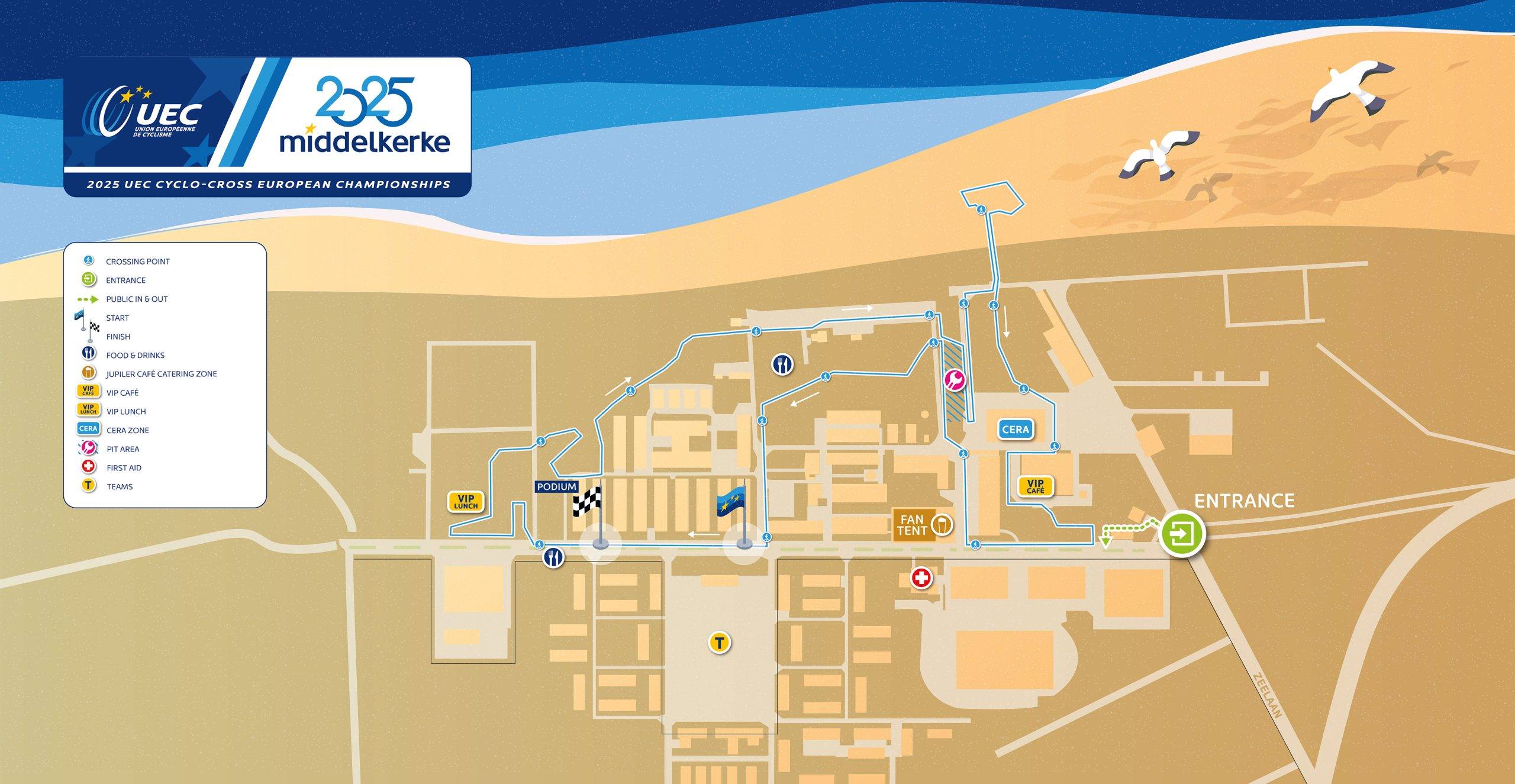 Bekijk het parcoursplan met een overzicht van de ronde, publiekszones en alle belangrijke locaties: